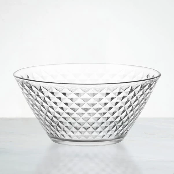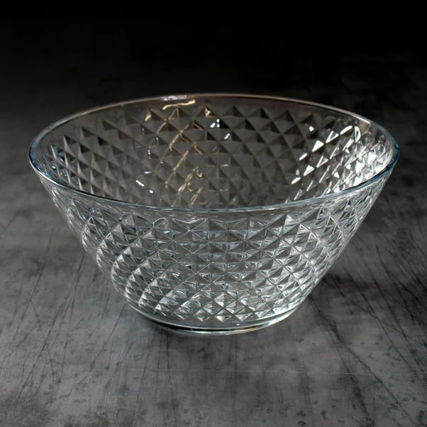 With its modern geometric design, this glass bowl is the perfect choice for food presentation. Constructed from durable glass, it’s built to withstand the test of time and is dishwasher-friendly. If you’re looking to complete your set, a smaller version of this bowl with the same design is also available.