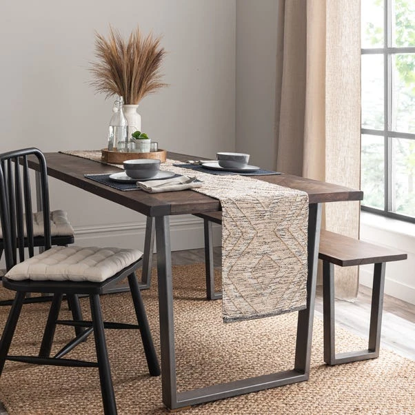 This stunning table runner in a natural colourway will complement an array of decors and is made from recycled cotton and jute. Raised diamond detailing in jute contrasts beautifully with the multi-tonal soft cotton. Available in 2 sizes to suit your table size, you can coordinate with other matching items from our Aztec Jute range.