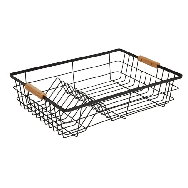 Made from metal with bamboo handles, this practical dish drainer has been finished in a black colour and is perfect to place your draining dishes and cutlery for neat space saving on your worktop.
