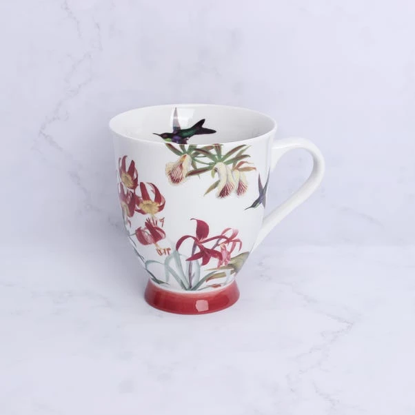Elevate your tea-time ritual with our Botanical Bird Footed Mug, a porcelain gem that effortlessly combines elegance with practicality. Designed with a charming botanical bird and floral/leaf decal, this mug features a unique pink footed base for a touch of sophistication. With its wrap-over decal inside, it adds a subtle touch of luxury to your daily moments.
