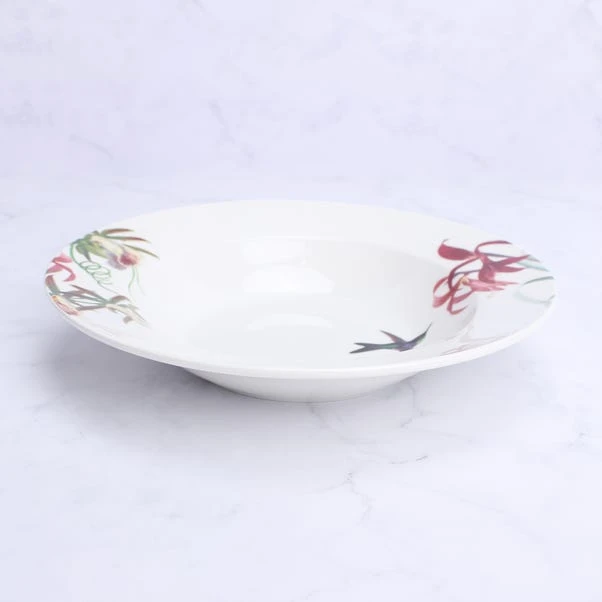 Serve pasta in style with our Botanical Bird Pasta Bowl, a porcelain marvel with a beautiful botanical bird and floral/leaf decal design. Dishwasher safe and accompanied by matching items, this bowl adds a touch of elegance to your dining table, enhancing every mealtime moment.