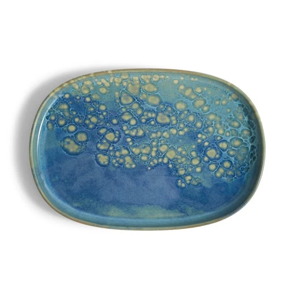Indulge in the artistry of our Delphi Oval Platter, where high-quality stoneware meets a mesmerising reactive design in rich blue and green hues. Practicality meets sophistication as this microwave and dishwasher-safe masterpiece effortlessly elevates your dining experience. Meticulously crafted with a reactive glaze, each piece is a one-of-a-kind work of culinary art. Dive into a world of uniqueness and explore our Delphi dining accessories to curate your perfect set. Please note: Wash before first use.