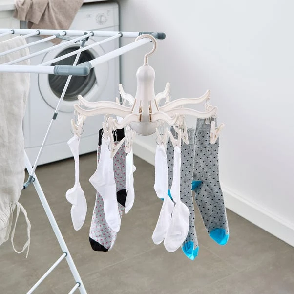 Get organised with the Dunelm Octopus 16 x Peg Hanger, a fun and practical solution for all your drying needs. Made from high-quality materials, featuring long-lasting springs, the pegs are built to be durable and reliable for everyday use. With 16 pegs, this clever octopus-shaped hanger is perfect for hanging clothes, socks, and other small items, meeting all your laundry needs. When you’re done, simply fold it up and store it away with ease, saving space in your home. Compact, quirky, and efficient, this hanger is a must-have for any household. A simple, yet stylish way to keep your laundry neat and tidy!