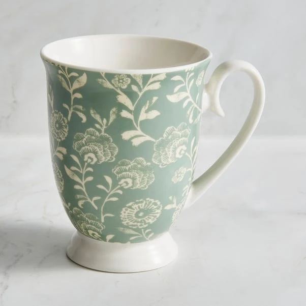 Add some elegance to your crockery collection with the Ella Floral Footed Tea Cup. Dressed in a pale-green colourway with a contrasting cream handle, foot and inside, this beautiful piece is crafted with care from high-quality and durable new bone china and is microwave and dishwasher friendly for your added convenience.