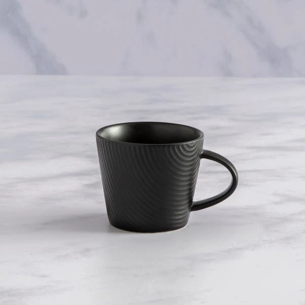 Made from durable fine china, this dishwasher and microwave safe embossed curve espresso mug features a curve embossed texture design with a matte glaze.