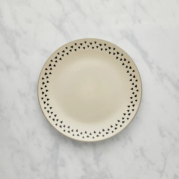 Boasting a stylish triangular pattern and a striped embossed outside, this plate is perfect for adding a contemporary touch to your kitchen or dining table. With a colourful rim this plate brings a splash of colour to your table. Dishwasher safe, this plate is easy to clean. Other matching crockery is also available.