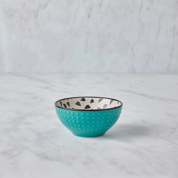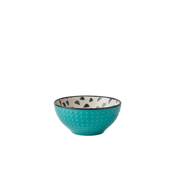 Boasting a stylish triangular pattern and a dotty embossed outside, this bowl is perfect for adding a contemporary touch to your kitchen or dining table. With a colourful rim this bowl brings a splash of colour to your table. Dishwasher safe, this bowl is easy to clean. Other matching crockery is also available.
