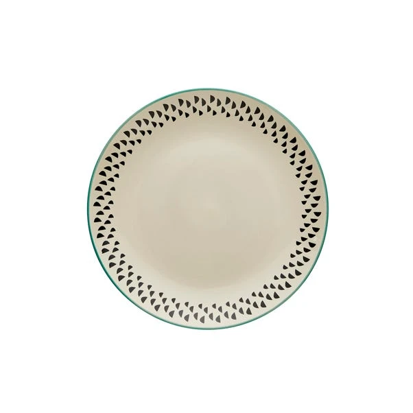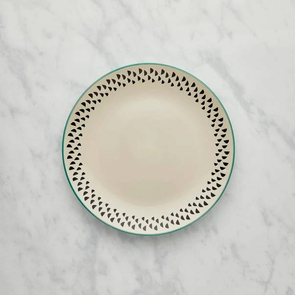 Boasting a stylish triangular pattern and a dotty embossed outside, this plate is perfect for adding a contemporary touch to your kitchen or dining table. With a colourful rim this plate brings a splash of colour to your table. Dishwasher safe, this plate is easy to clean. Other matching crockery is also available.