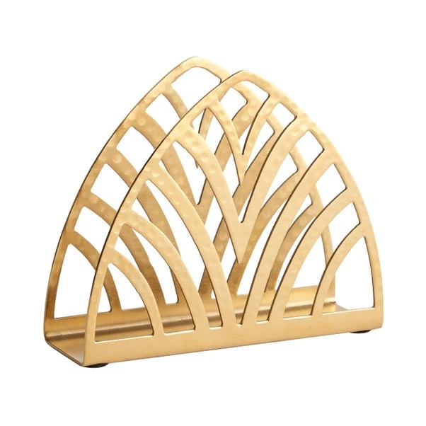 Keep your napkins looking neat and tidy with this standing napkin holder, featuring a stylish cut-out design and gold hammered finish.