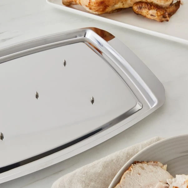 Carve with confidence using our Gourmet Stainless Steel Spiked Meat Tray. The five central spikes securely hold meat or poultry in place while carving. Dishwasher safe and backed by a five-year guarantee, it’s the perfect addition to your kitchen arsenal.