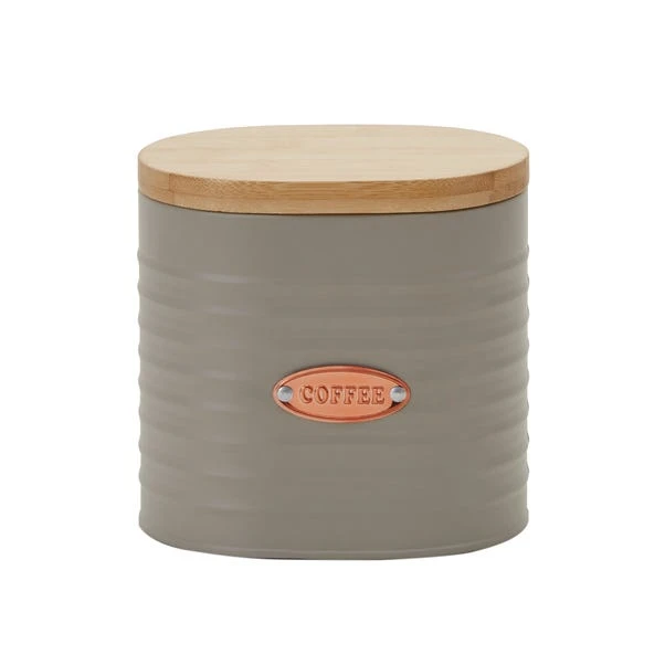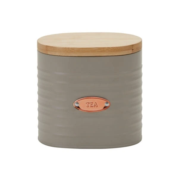 Made from galvanised steel with a modern bamboo lid, the kitchen canister has been finished in grey with stylish copper detailing. Coordinating items available to purchase separately.