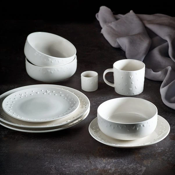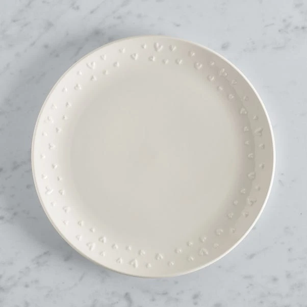 This charming dinner plate has an embossed heart design, great for adding a touch of country style to your table. Made from durable stoneware, itβs dishwasher safe and easy to care for. Part of the Heart Embossed range, other items are available for a cohesive table style.