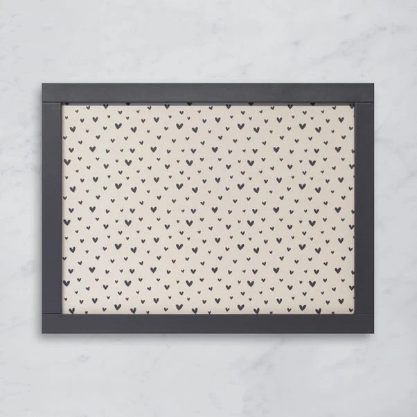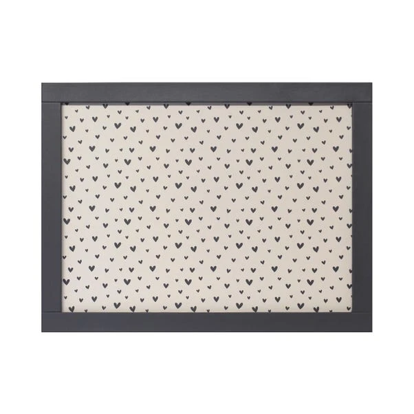 A tray that makes your heart skip a beat! The Hearts Black & White Rectangular Lap Tray is perfect for cosy mealtimes, morning coffee, or even a stylish laptop stand. The charming heart design in classic monochrome adds a touch of elegance, while the wipe-clean surface ensures spills are never a problem. Pair it with matching accessories to complete the look—because every meal deserves a little extra love!