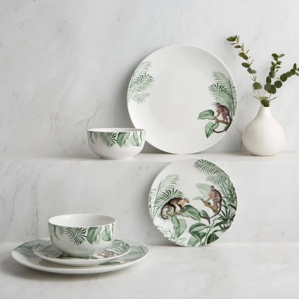 Crafted from porcelain and featuring a delightful decal design that depicts jungle leaves and monkeys, this 12-piece dinner set has all the crockery that you need. Included are four dinner plates, four side plates and four cereal bowls – all of which are microwave and dishwasher friendly for added convenience!