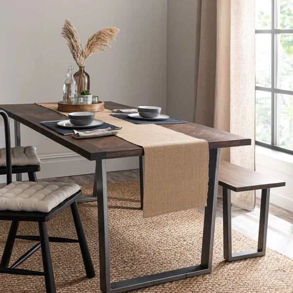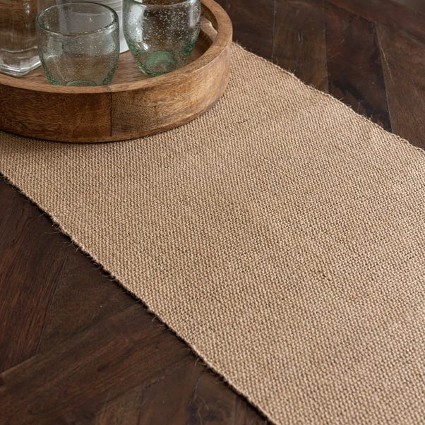 Made of woven jute, this textured table runner protects your table and adds a rustic, natural feel to your dining. Add an elegant finish with a vase and candles for a complete look. It comes available in 2 sizes for any dining table size.