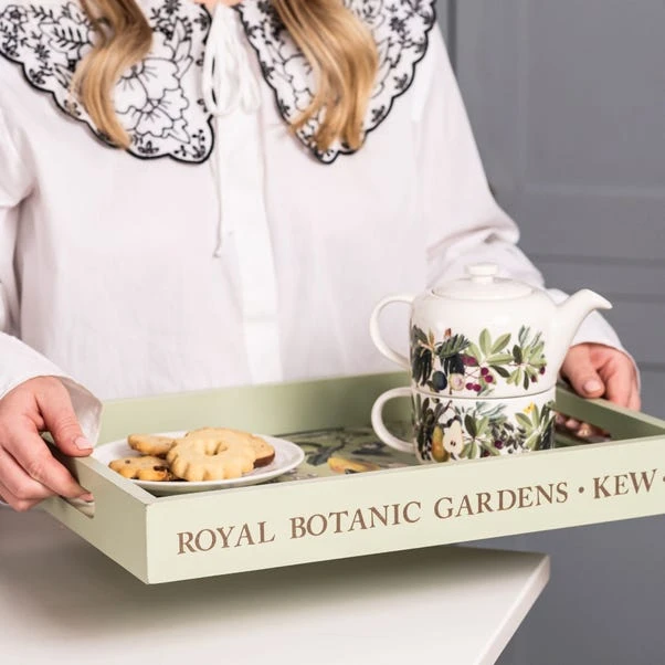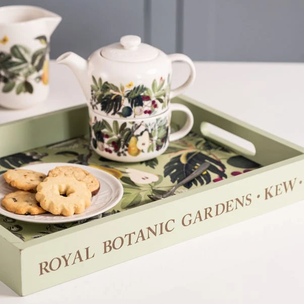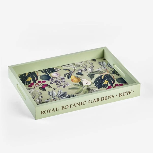Featuring the stunning Fruit and Floral artwork from the archives at the Royal Botanic Gardens, Kew, the Bloom Tray is guaranteed to breathe botanical beauty into the home. Made from wood with a lacquer finish, the tray is wipeable and easy to clean, as well as being complete with an etched Royal Botanic Gardens logo on the side for that extra special touch. Finished with a ribbon & tag perfect for gifting. Pair the Bloom Tray with matching items in the range for a beautifully botanical kitchen collection.