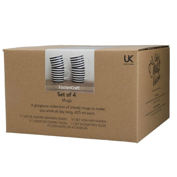 Add a touch of timeless charm to your kitchen with the 4pk Stripe Mug Set from KitchenCraft. Each of these chunky, barrel-shaped mugs features classic blue and white stripes, bringing a nautical vibe to every sip. Made from high-quality porcelain, they’re built to last and offer a sturdy, huggable feel that’s perfect for your favourite hot drinks. Whether you’re enjoying a morning cuppa or a cosy evening hot chocolate, these mugs are microwave and dishwasher-safe for easy use. The set comes gift-boxed, making it an ideal present for a tea or coffee lover.