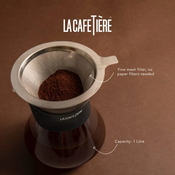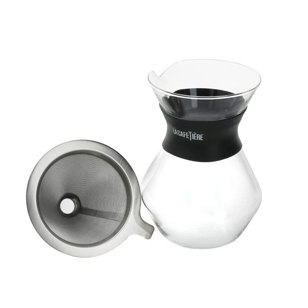 Become a coffee connoisseur with La Cafetiere’s beautifully sleek Glass Dripper and Carafe. This elegant set includes everything you need to brew rich, aromatic coffee, with a reusable stainless steel filter that’s both cost-effective and eco-friendly. Simply add your coffee grounds, pour over hot water, and watch as the magic unfolds. The silicone band ensures a comfortable grip and controlled pour, while the heat-resistant borosilicate glass carafe looks stunning on any countertop.