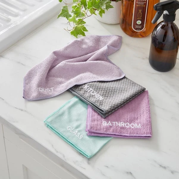 Tackle all your daily cleaning tasks with this pack of 4 multipurpose microfiber cloths. Designed with a soft yet resilient composition, these cloths gently clean surfaces without leaving scratches, making them ideal for everything from countertops to delicate items. Machine washable and reusable, they offer a durable and responsible solution for your home. Perfect for dusting, polishing, and wiping, these versatile cloths are a must-have for effortless cleaning.