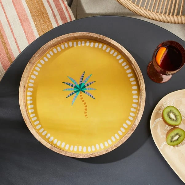 This beautiful Palm Leaves Serving Tray is a great addition to your summer table. Featuring a bright and vibrant hand finished design, this tray is durable and sturdy, thanks to its mango wood construction. It’s perfect for presenting drinks and snacks during your next get-together, or for everyday use. It’s simple to maintain – just wipe clean and it’s ready for the next use.