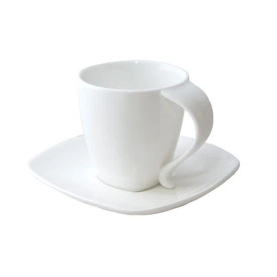 This cup and saucer set are finished in a matching glossy white tone and crafted from a fine china.