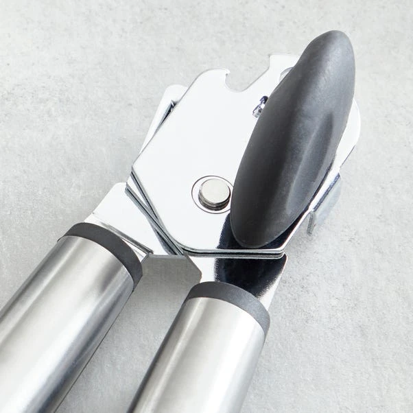 Designed for ease of use, this can opener has a large, non-slip rotary piece to prevent cutting hand injury and a soft plastic handle making it comfortable to hold. This is an essential piece to have in your kitchen.