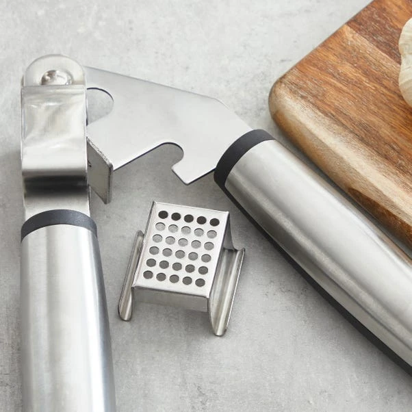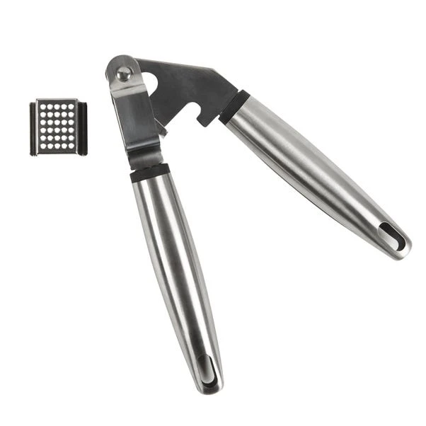 Designed with a soft and plastic handle, making it comfortable to hold, this easy to clean garlic crusher is made from rust-proof stainless steel, therefore a durable utensil to have in your kitchen.