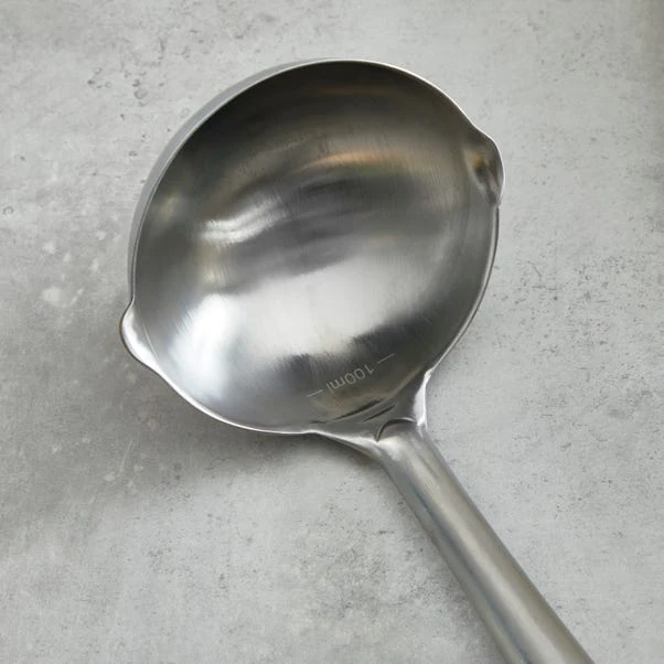 Made from a rust-proof stainless steel, this durable ladle with a pouring lip and measurements has a soft plastic handle for comfortable and easy use. Designed with a hole in the top, this ladle can be hung up or placed in a drawer for easy storage, keeping your kitchen neat and tidy.