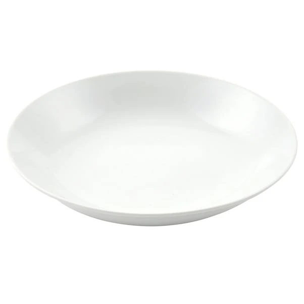 Crafted from porcelain, this wide pasta dish features a traditional plain white design and a soft curve.