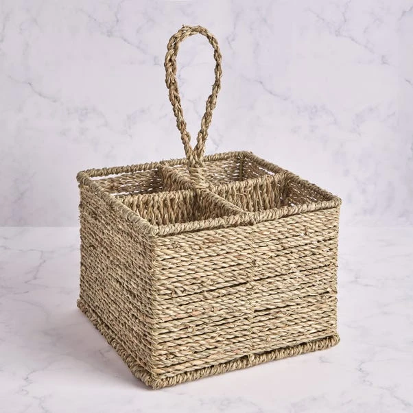 Add some boho-inspired, rustic charm to your dining table with the Rattan Condiment Basket. Crafted from durable rattan, it features four handy compartments to store cutlery, napkins, or even sandwiches!
