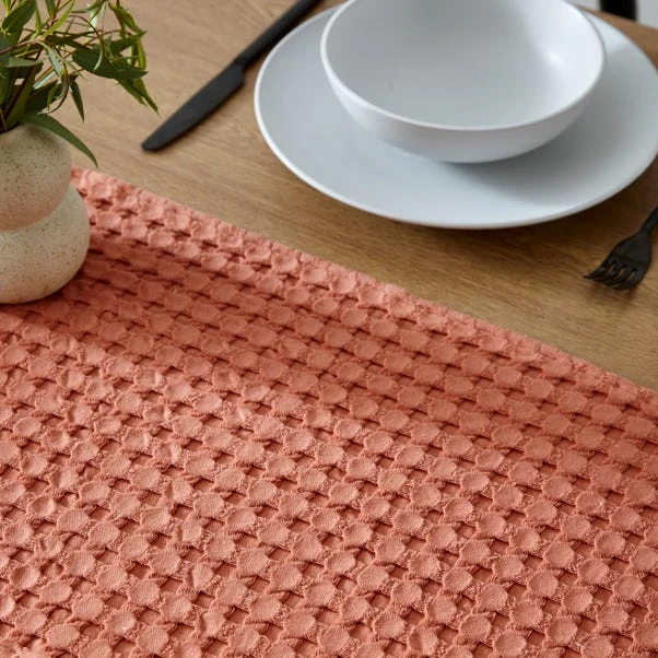 Enhance your tabletop with our Rust Waffle Table Runner, a cotton marvel offering great texture in a rich, rust colourway. The hemmed edge adds a polished finish, making it a perfect addition to your dining decor. Available in two sizes, this table runner effortlessly infuses warmth and sophistication into your space.
