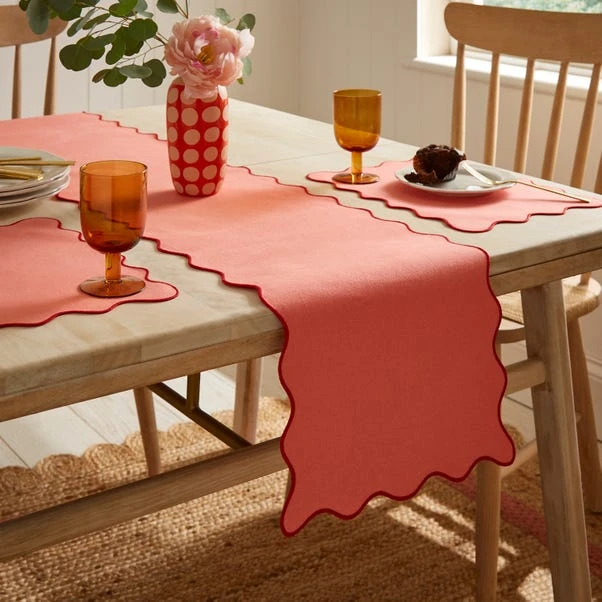 For a unique and vibrant addition to your dining table, this Scalloped Edge Table Runner is perfect for adding flair to any dinner party. With a beautifully crafted embroidered edge, add this runner to your tableware and wow guests with its distinctive style.