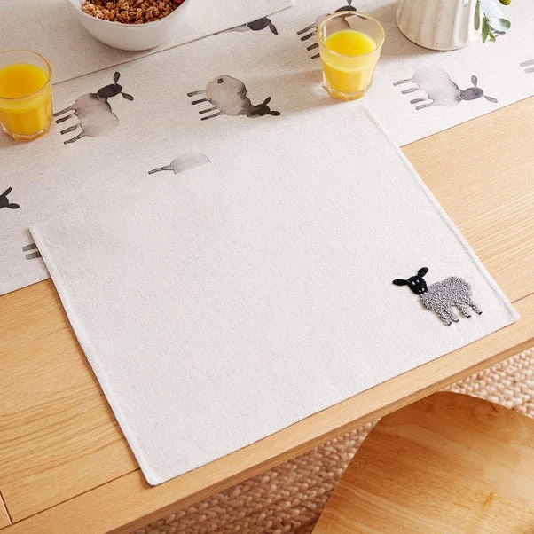 Dine in style with our Set of 2 Sheep Placemats, featuring a modern sheep raised motif on a cotton blend of 85% cotton and 15% linen. Machine washable and durable, they add a touch of rustic charm to your table setting.