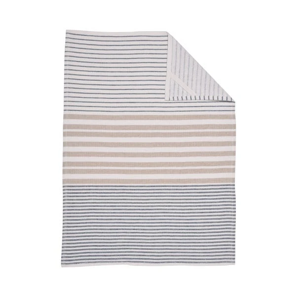 Embrace practicality and style with our set of 3 coastal tea towels, designed for super absorbency with a printed stripe face and terry reverse. In classic commercial colours of blue, natural, and white, these 100% cotton towels are both functional and aesthetically pleasing. With convenient hanging loops and a 3-pack option, they effortlessly enhance your kitchen space while ensuring spills are taken care of in style.