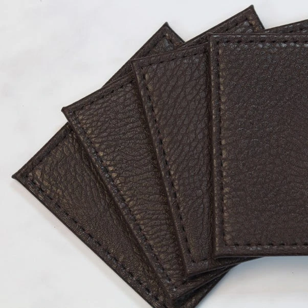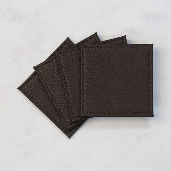 Double the style, double the protection! This Set of 4 Brown Faux Leather Coasters gives you the best of both worlds, with a chic dual-sided design that lets you switch between cream and grey. Heat resistant and easy to clean, they’re perfect for everything from hot mugs to icy cocktails. Pair them with the matching placemats for a coordinated and contemporary look!