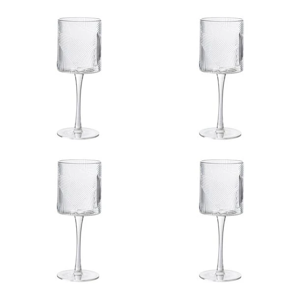 Crafted with an attractive embossed glass design, these set of four Linear Wine Glasses have been created from quality clear glass and is perfect for enjoying a drink with family and friends. For coordination, matching glasses are available to purchase separately.