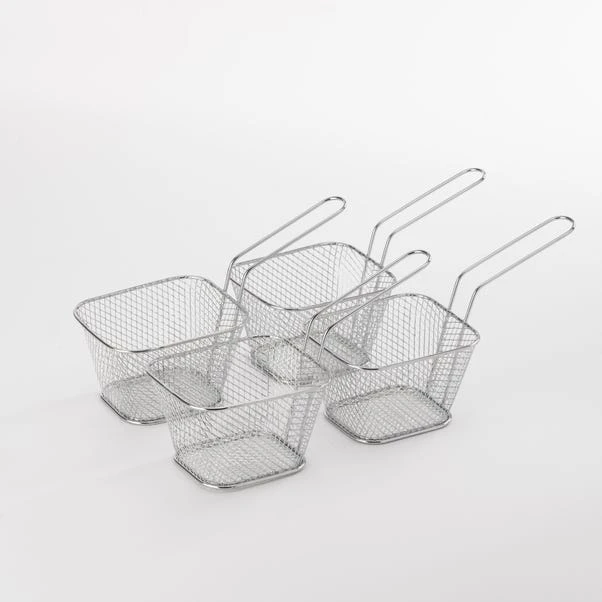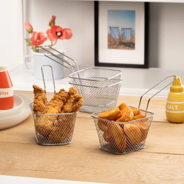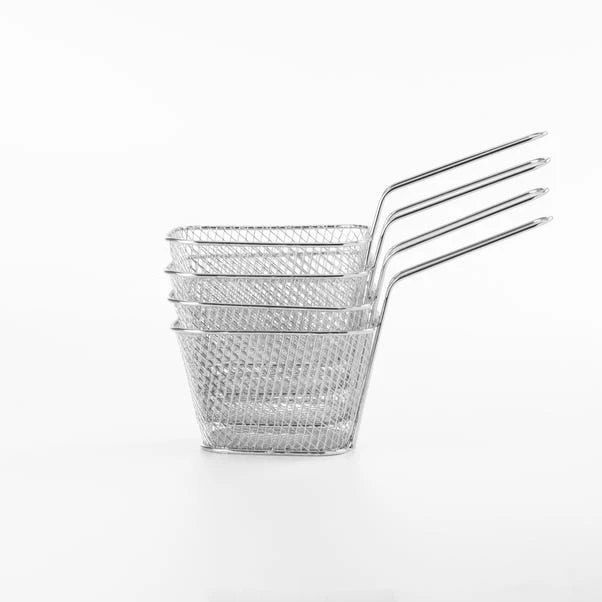 Serve up your favourite sides in style with this set of 4 retro mesh fryer baskets. Perfect for both frying and serving, they offer a classic, stylish way to present your food. The ideal size for creating the perfect portions, these baskets bring a touch of nostalgia to any meal. Durable and practical, they’re perfect for everything from crispy fries to golden onion rings. Whether you’re cooking for family or guests, these baskets make serving effortless and fun. Add a playful yet functional touch to your kitchen with this must-have set.