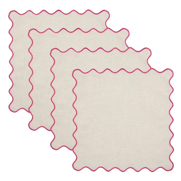 Add a touch of fun and colour to your table with our beautiful Scalloped Napkins. This pack of four napkins are crafted from a sustainable blend of recycled cotton and recycled polyester, offering an eco-friendly option to your home. Whether you’re hosting a dinner party or enjoying a casual meal, these napkins bring a cheerful pop of colour to your table. Their durable material makes them practical for everyday use while still looking stylish. Refresh your dining experience with these charming and sustainable napkins.