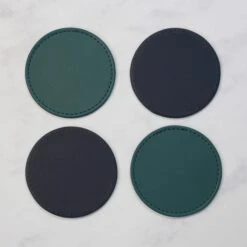 Set Of 4 Peacock & Navy Faux Leather Reversible Round Coasters