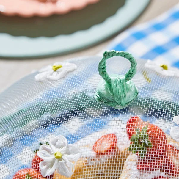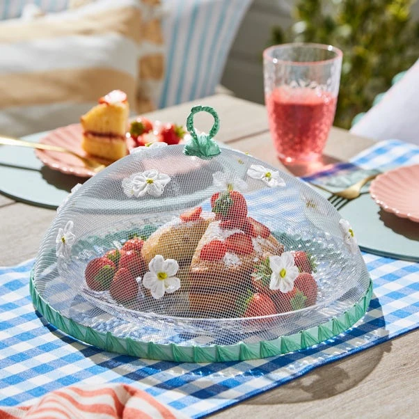 Add a loving, homemade feel to your table with this adorable Food Cover, featuring a beautiful 3.D. floral design. Composed of mesh material, this food cover is suitable for use indoors and outdoors, effectively protecting your food items from unwanted pests and keeping them fresher for longer!