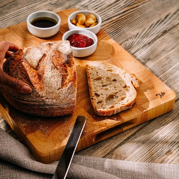 Made from hygienic rubberwood, this heavy duty chopping board will help protect work surfaces from unwanted scratches and scrapes.