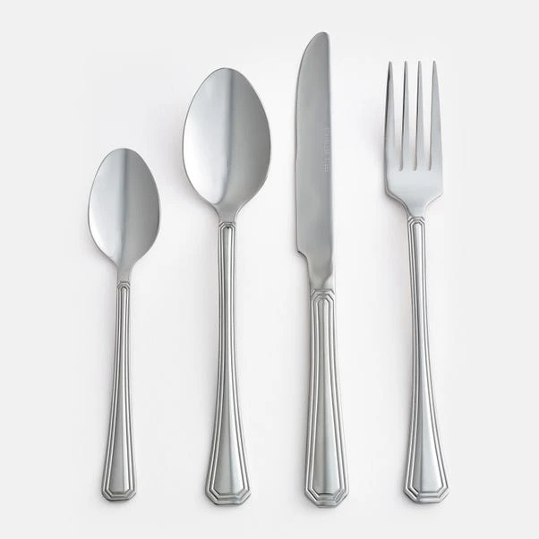 The Winford 16-Piece Cutlery Set combines durability with a touch of elegance, made from premium stainless steel for long-lasting use. This set includes dinner knives, forks, dessert spoons and teaspoons, all featuring sleek lines and geometric patterns for a modern yet timeless look, perfect for art deco fans. The ergonomic design ensures a comfortable grip, making every meal a delight, whether casual or special. Ideal for adding a touch of sophistication to any table, the Winford Cutlery Set seamlessly blends style and practicality.