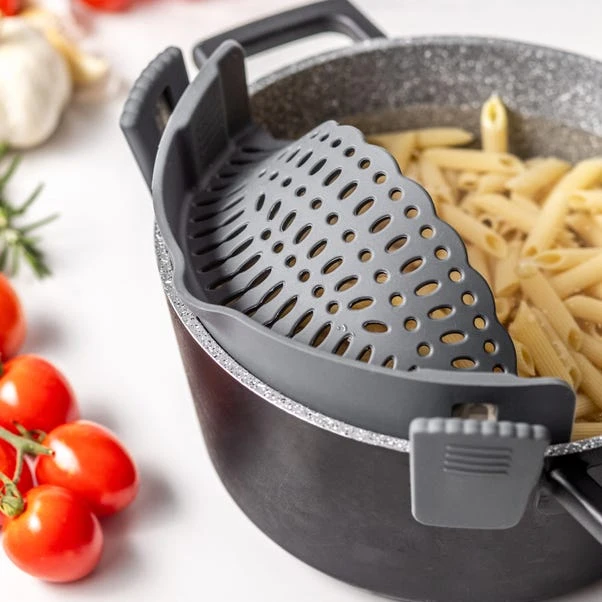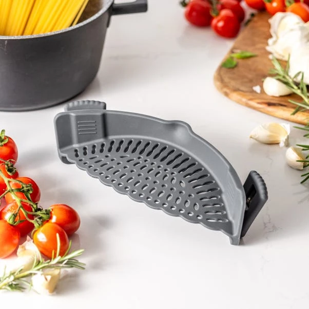 This handy adjustable silicone clip on colander fits on any pan and makes dinner time so much easier. Simply clip it onto the side of your pan and drain away. Whether it’s pasta, potatoes or veggies for dinner, you’ll be glad you have this colander to hand.