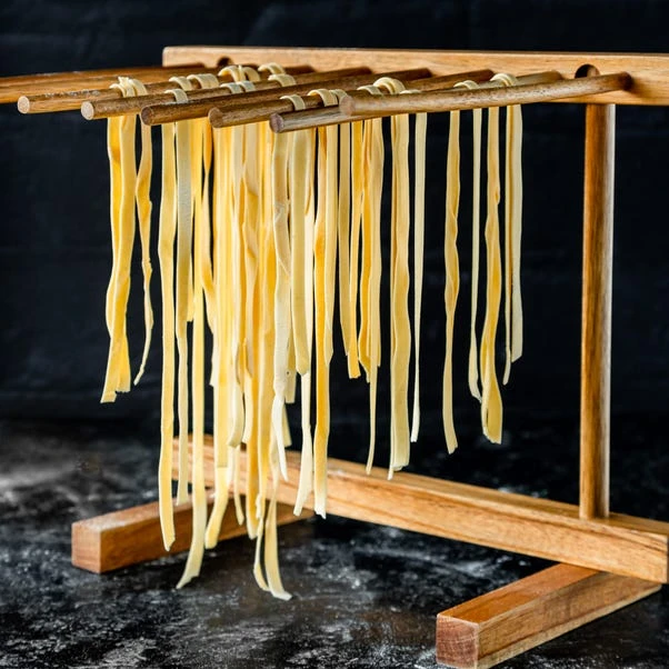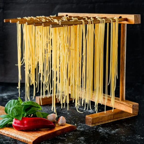 Embrace the art of pasta making with our Pasta Drying Rack. Made from beautiful acacia wood, this rack allows air to circulate for natural drying of various pasta types. Conveniently folding flat for storage, it’s easy to assemble and ideal for drying spaghetti, tagliatelle, fettuccine, linguine, and capellini. Remember to keep it in a well-ventilated area for efficient drying.